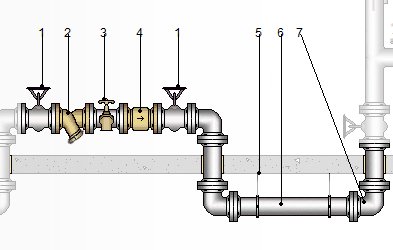 Alimentación de agua potable, de 8 m de longitud, colocada superficialmente, formada por tubo de polipropileno copolímero random (PP-R), de 32 mm de diámetro exterior, PN=10 atm; llave de corte general de compuerta; filtro retenedor de residuos; grifo de comprobación y válvula de retención. |